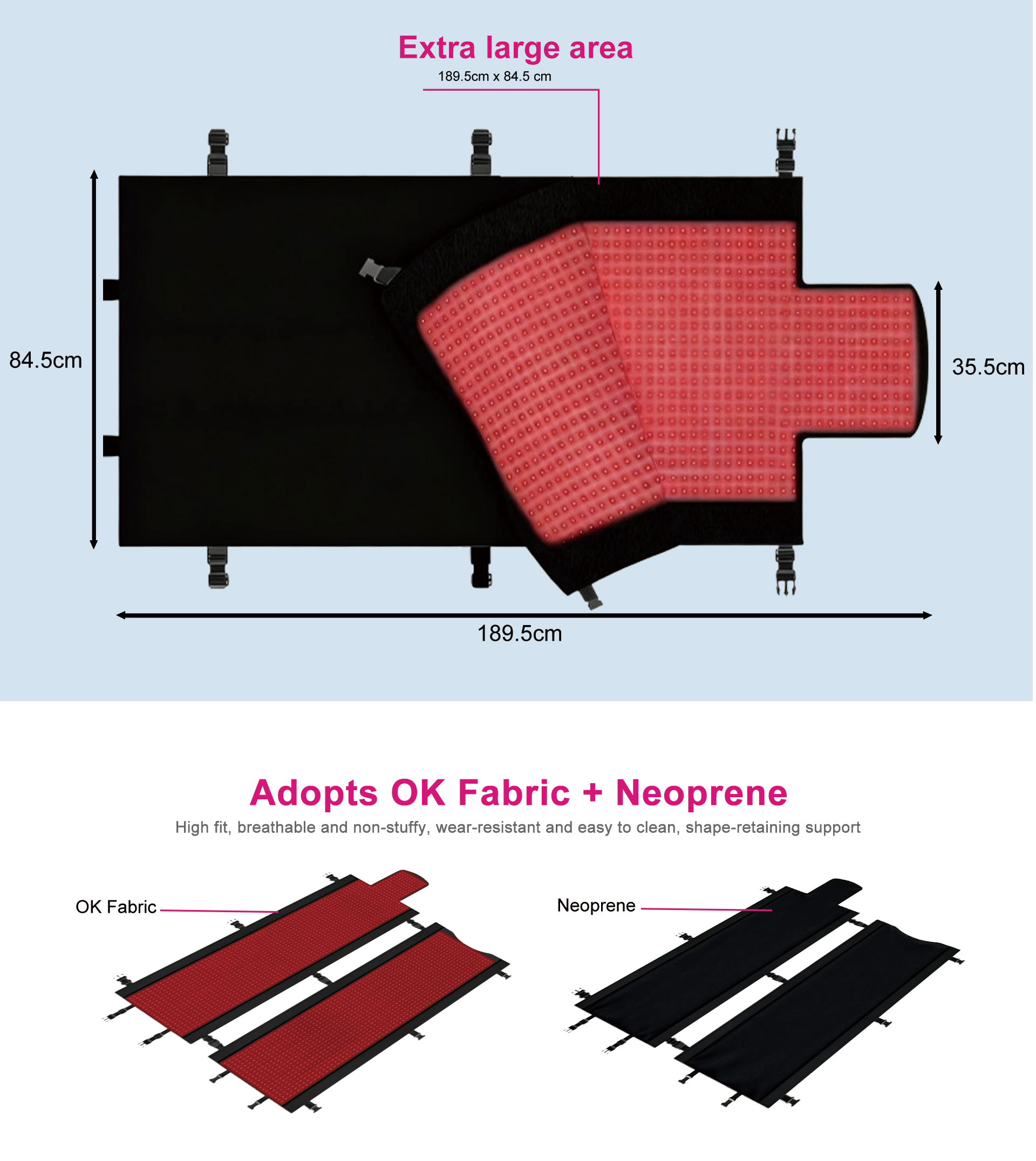 Full-Body Coverage : Large mat for complete phototherapy.